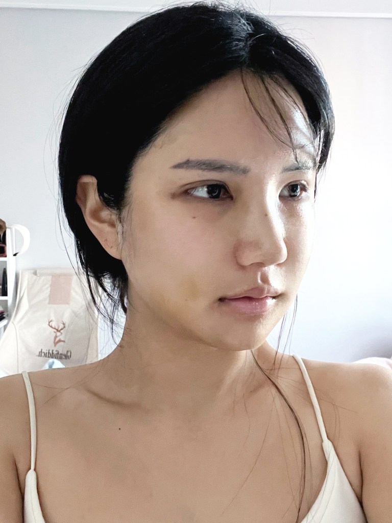 The first week after surgery felt incredibly long. Although my eye surgery was a revision, I also had facial contouring (three areas), rhinoplasty, pyriform augmentation (to enhance the mid-face), and fat grafting, so I was eager for the swelling to go down so I could see my improved appearance. On the day of the surgery, when I just got out of the surgery, I felt drowsy and tired than usual, but there was no pain. Breathing was uncomfortable because of the cotton stuffing placed in my nose, and my throat felt swollen and a bit sore. On the second day, the swelling worsened, and bruising started to become more noticeable. I used ice packs to help reduce the swelling, but it didn’t seem to go down quickly. On the third day, the cotton stuffings were removed from my nose, allowing me to breathe through my nose instead of my mouth, which was a relief, though I still had a runny nose. I tried to take short walks to help reduce the swelling. By the 4th or 5th day, the purple bruises started turning yellow. On the 7th day, the splint was removed from my nose, and I could finally see the shape of my nose. Though there was still some swelling, the change in my profile was clear. Every time I went to DL for check-ups, they provided various treatments like oxygen domes and laser treatments, which made me feel very satisfied.